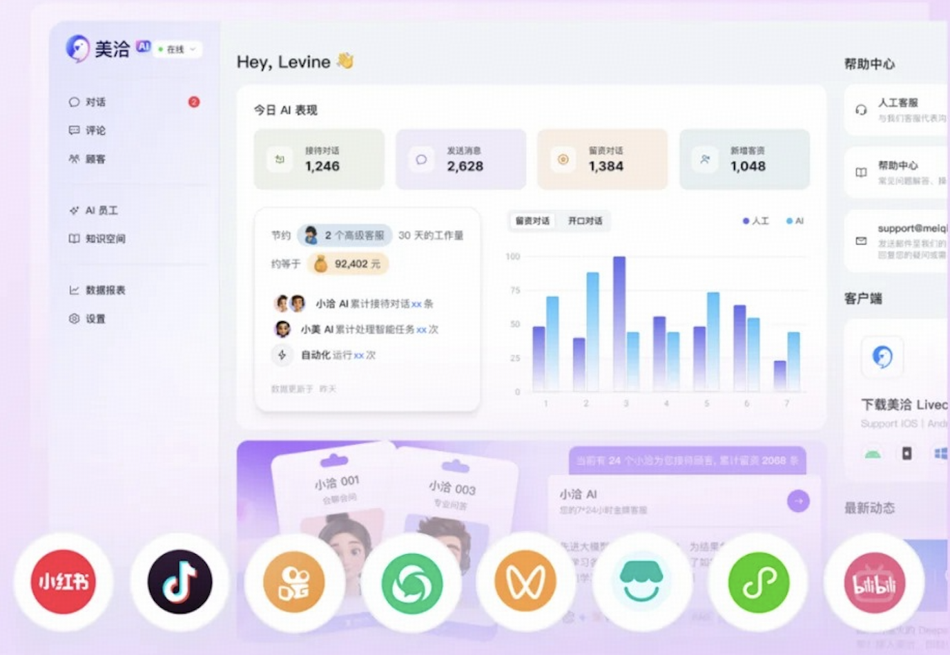 在这一背景下,一套深度集成AI大模型技术的在线客服系统,正成为连接营销、销售和服务的战略级基础设施。它不再是简单的问答工具,而是升级为具备自主获客、高效转化能力的“增长中台”。通过引入7x24小时在线的AI员工、实现多渠道数据融合、以及实时智能标签,现代客服系统能够实现对话即增长,显著提升客户终身价值(LTV)。