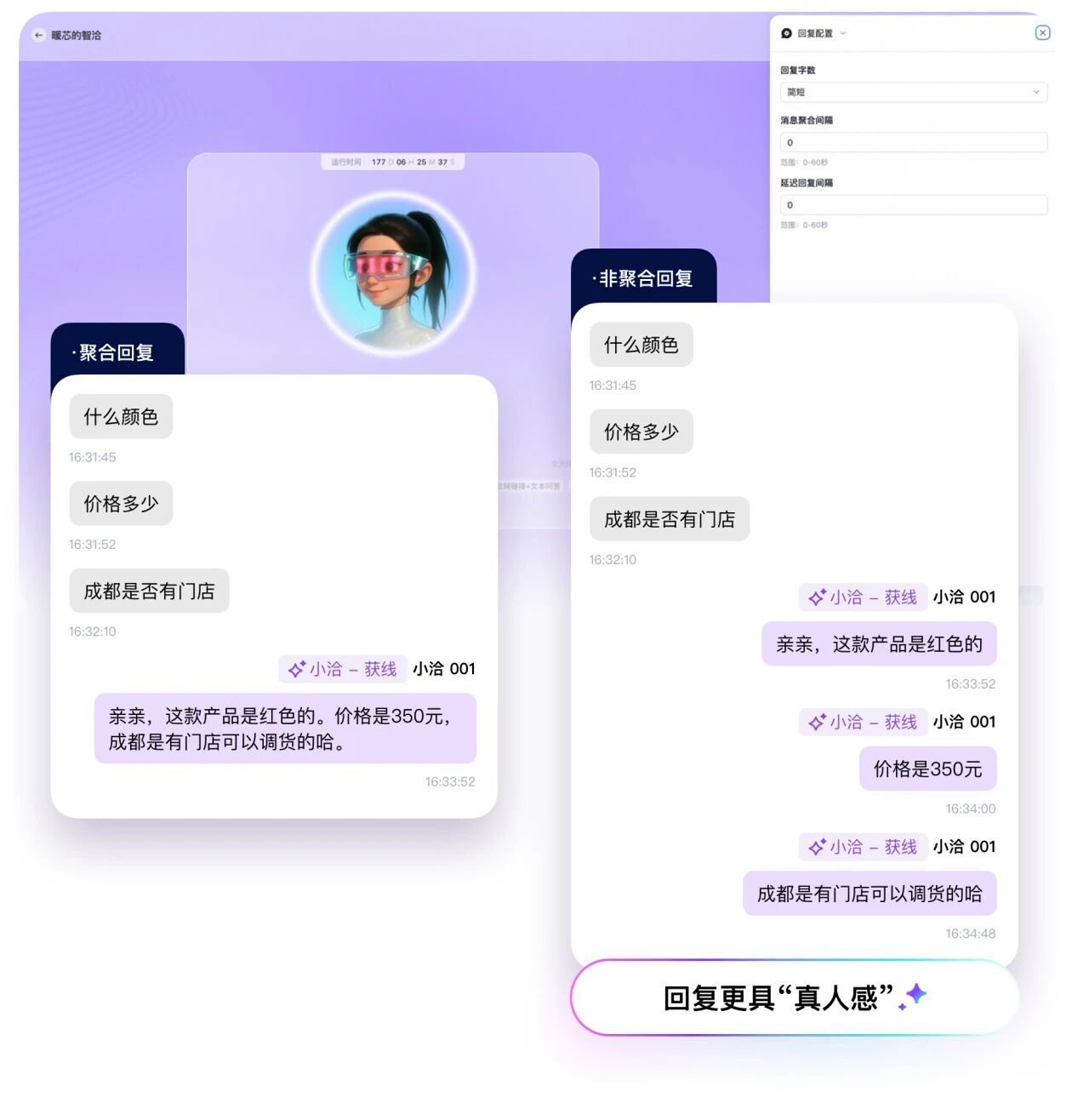 支持自定义AI Agent客户消息回复模式,对话体验更具「真人感」。美洽AI支持根据客户偏好设置「聚合回复」「非聚合回复」两种对话回复模式,可以根据该行业线上进线咨询用户偏好,个性化设置。客户实际使用反馈该功能有效提升了进线用户的咨询体验,能够更快完成留资转化。