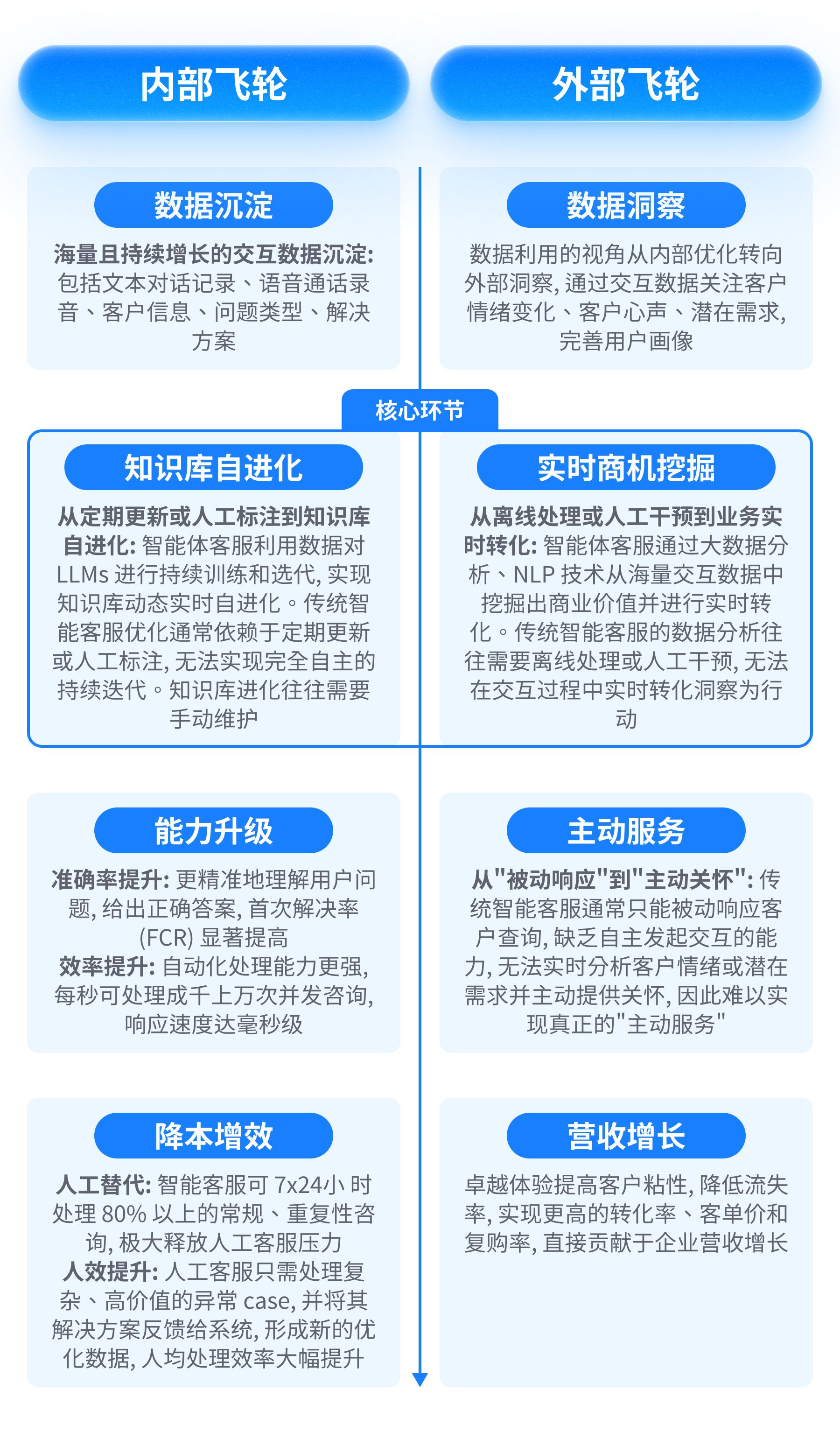 ▪️外部飞轮:数据 → 洞察 → 主动服务 → 增长形成企业服务与用户体验的正向循环。